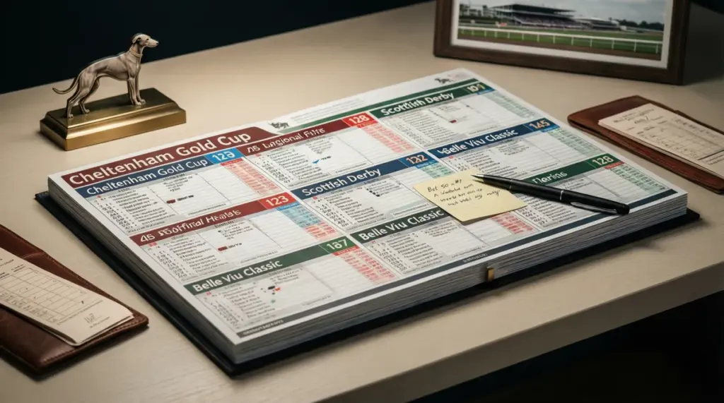 Mirar una tarjeta de carreras de galgos por primera vez...
